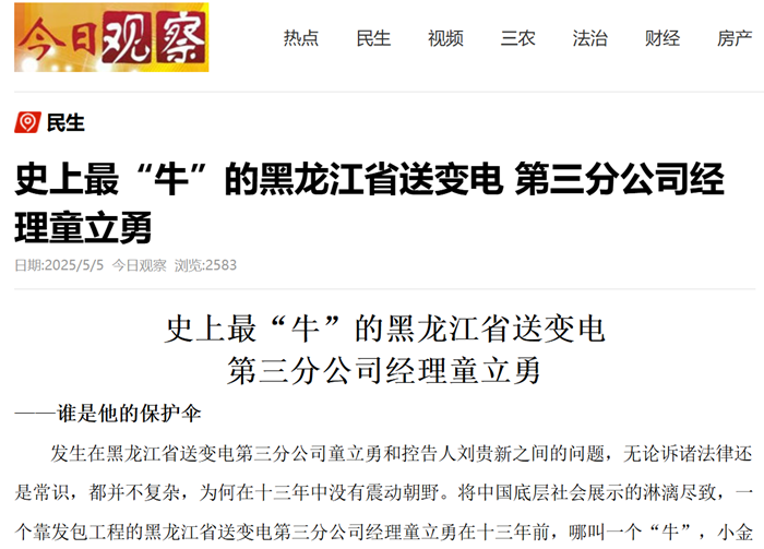 史上最牛的黑龙江省送变电第三分公司经理童立勇 谁是他的保护伞 发生在黑龙江省送变电第三分公司童立勇和控告人刘贵新之间的问题,无论诉诸法律还是常识,都并不复杂,为何在...