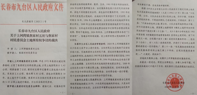 令人费解的是,上河湾镇政府曾承诺在纠纷解决前不得拍卖该土地,但焦明全无视劝阻违规操作。九台区政府最终裁决该土地归村集体所有,却未回应五社村民的原始权属诉求。村民们质疑:"镇政府的承诺成了空话,区政府的裁决避重就轻,我们的土地到底该归谁?"