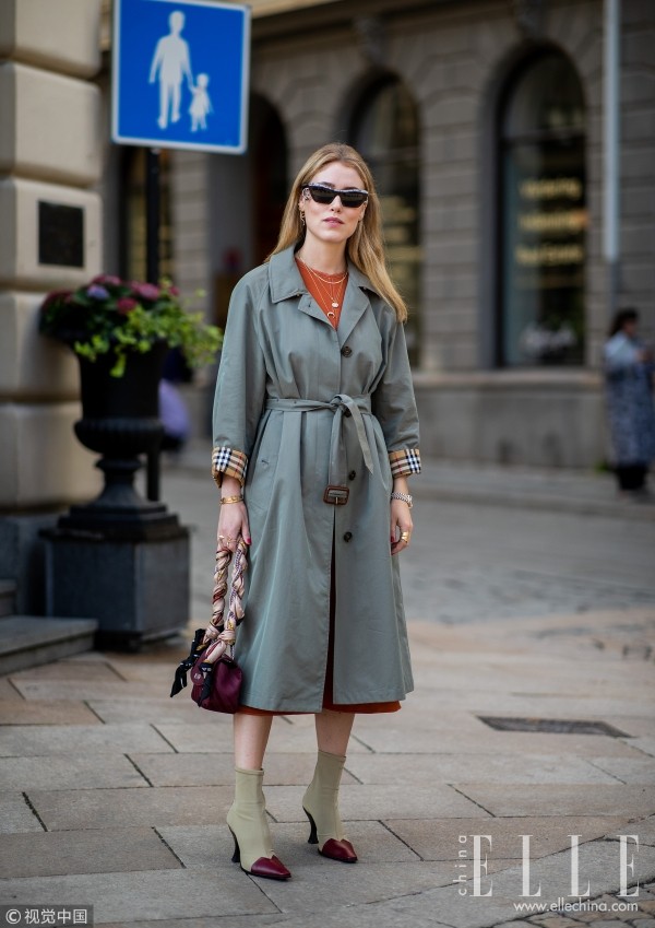风衣:秋风瑟瑟,是时候拿出轻薄的风衣了。卷起袖口能轻松削弱风衣的厚重感,露出的内衬也能为造型带来一些修饰作用。
